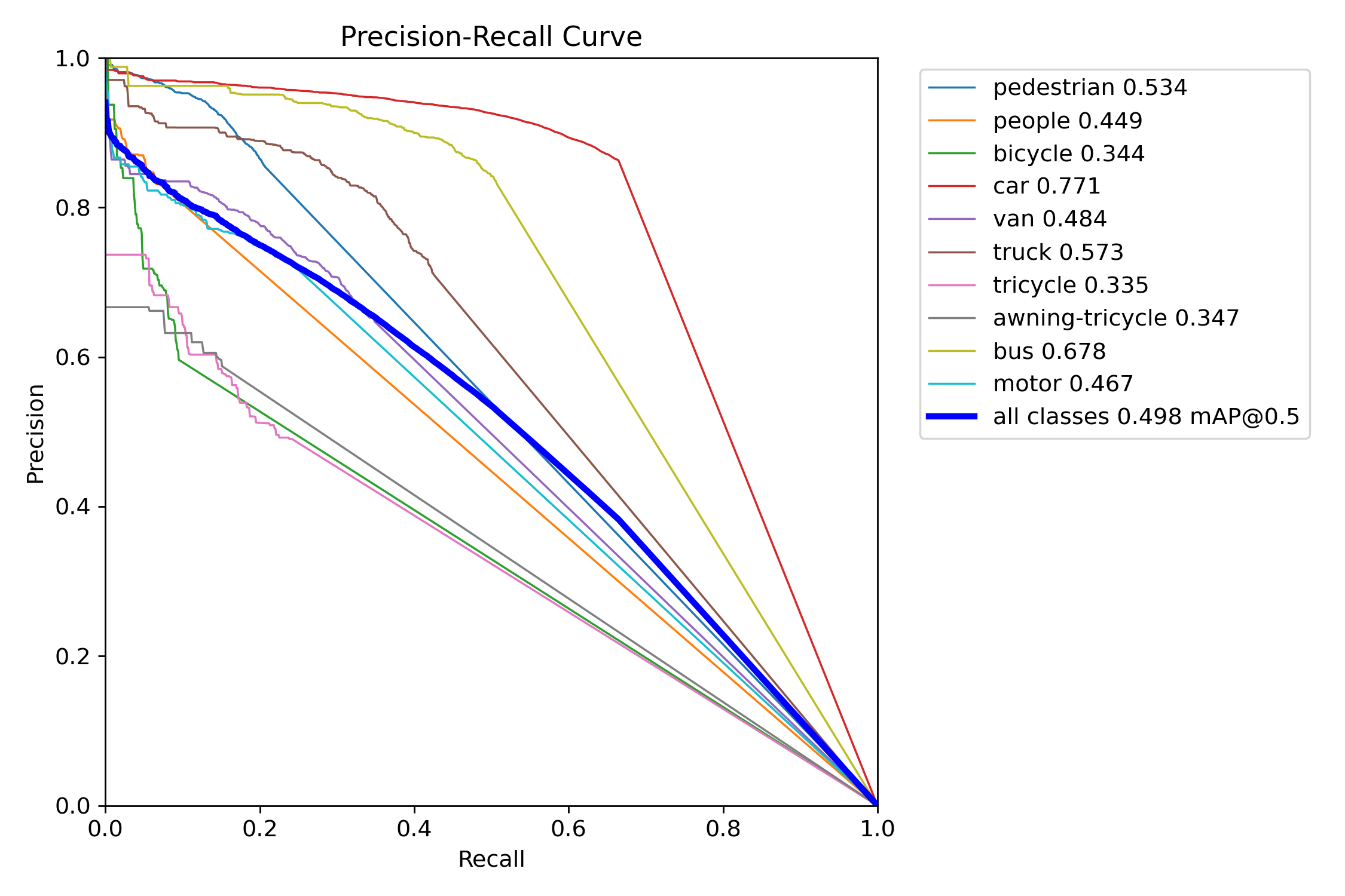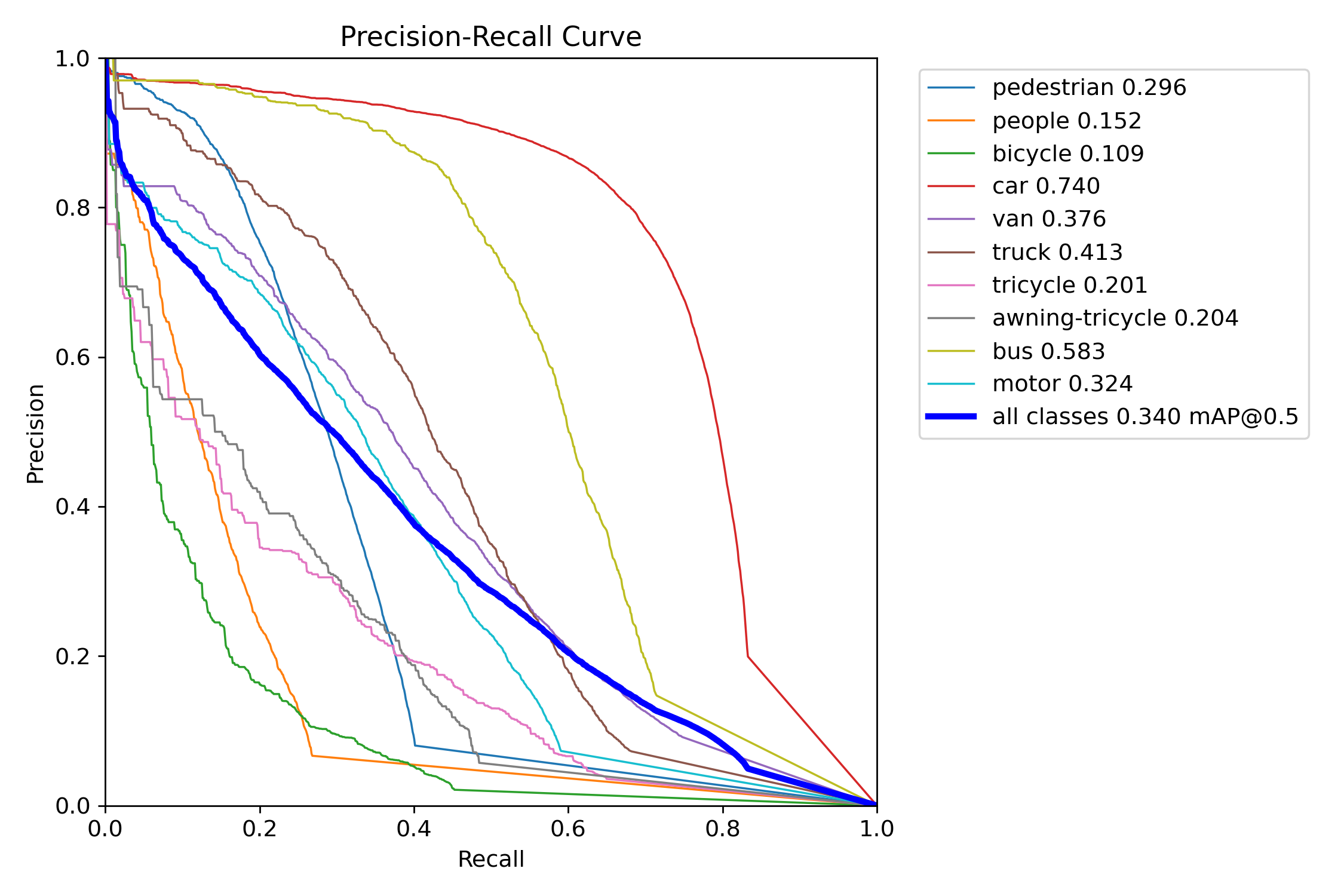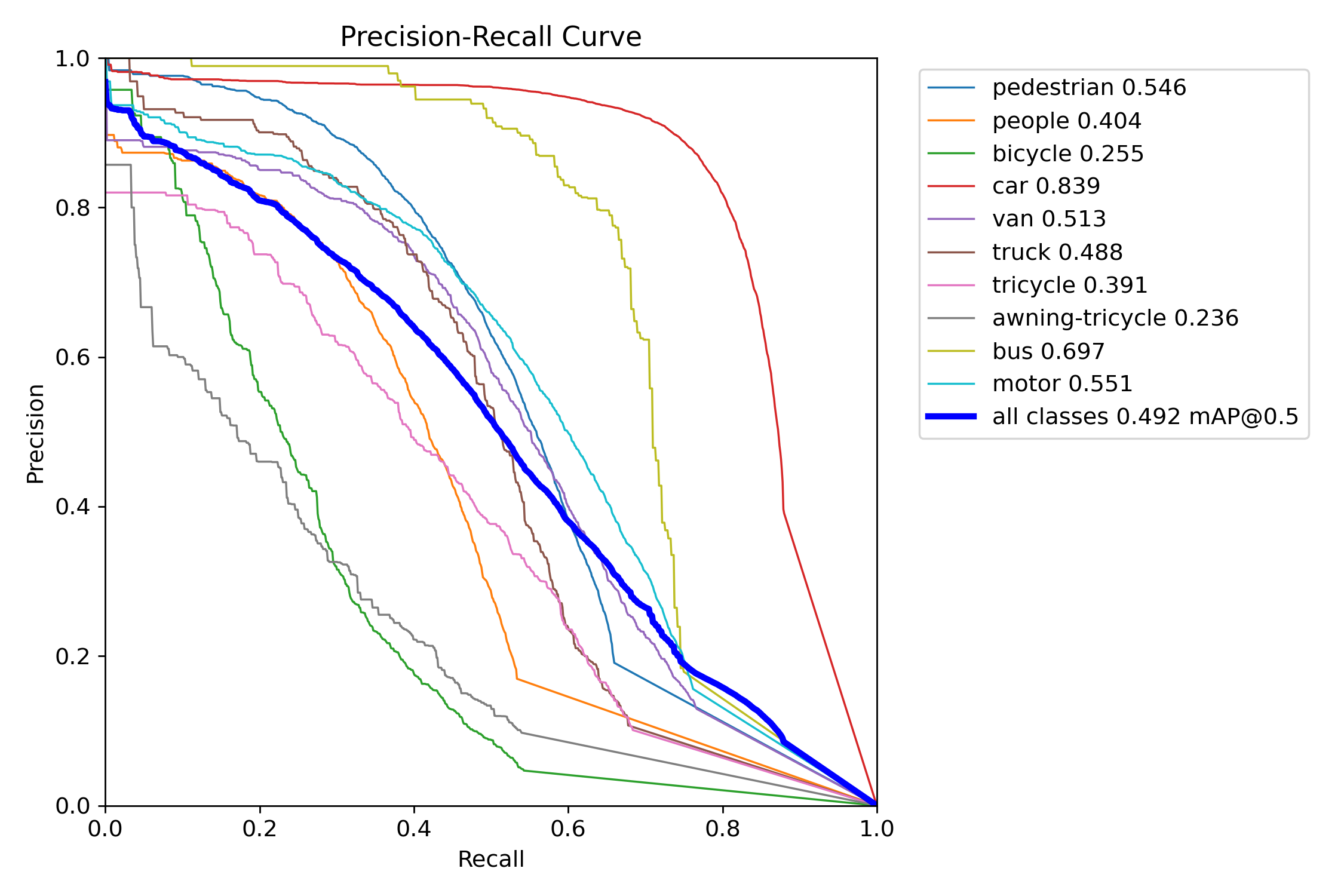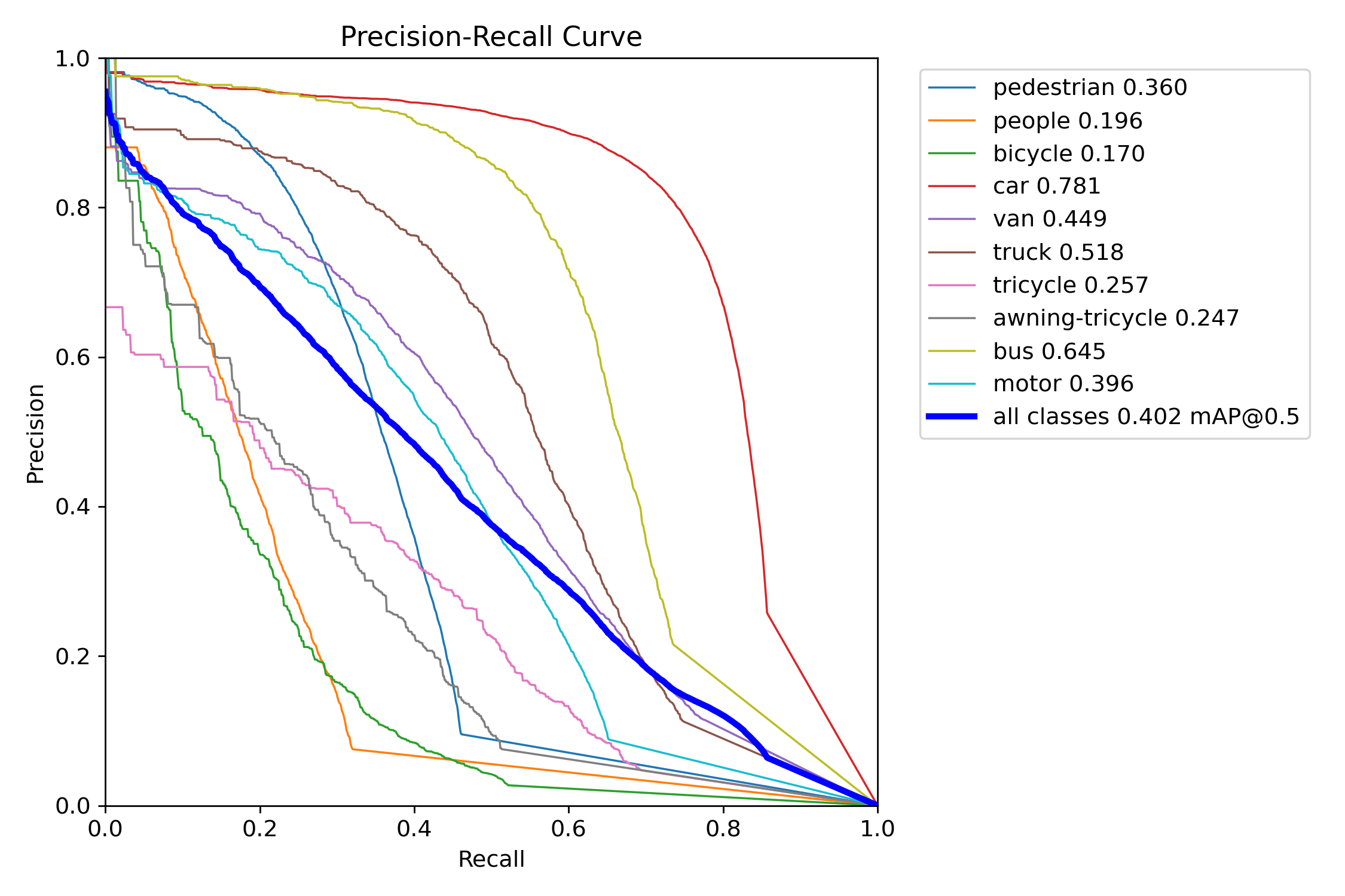 We started with COCO-pretrained weights for both YOLOv11 and YOLOv12 across five model sizes (n, s, m, l, x). From there, we fine-tuned each model on the VisDrone dataset using a 640×640 input resolution and a batch size of 16. All default training parameters were kept consistent to ensure a fair comparison. This allowed us to evaluate how each architecture handled the trade-off between model capacity and real-time performance, especially when applied to aerial scenes.