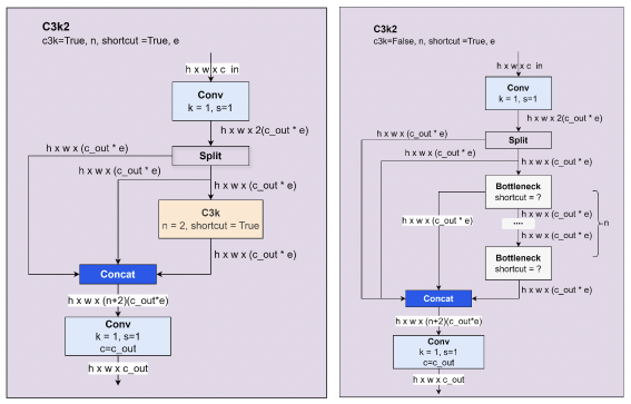Figure 2 – Comparison of C3k2 Block Variants with and without Shortcut Connections